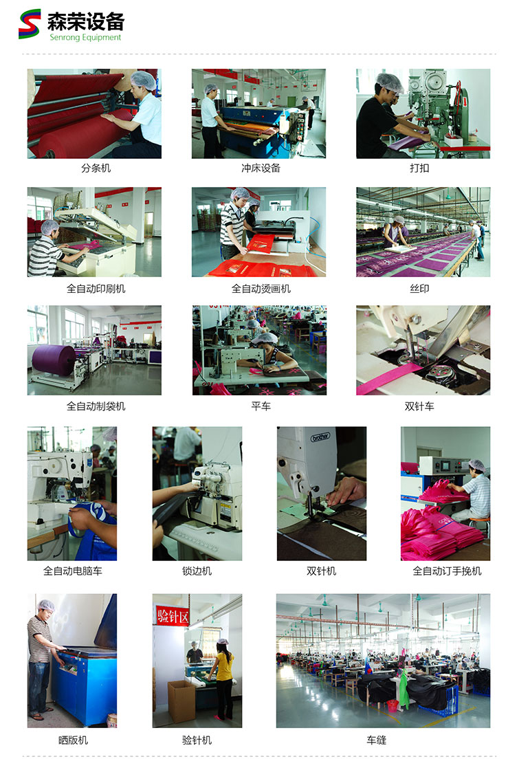 主要生產:手袋,環保袋,真皮|PU皮手袋,無紡布袋,牛津布袋,尼龍袋,帆布袋,棉布袋,麗新布袋,竹纖維布袋,經緯紙袋,石頭紙袋,針刺無紡布袋(毛氈布袋),絨布袋,編織覆膜袋,覆膜無紡布袋,酒袋,服飾包裝袋,西服套,圍裙,熱轉印袋,保溫袋(冰袋),防塵套,超聲波熱壓袋,玩具公仔袋等車縫制品。