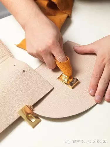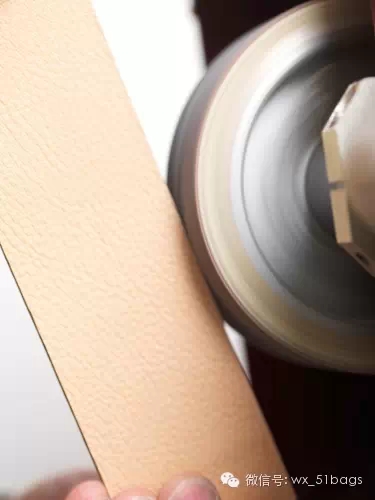 打磨油邊:將皮邊反復打磨,保證撞色油邊平整光滑。